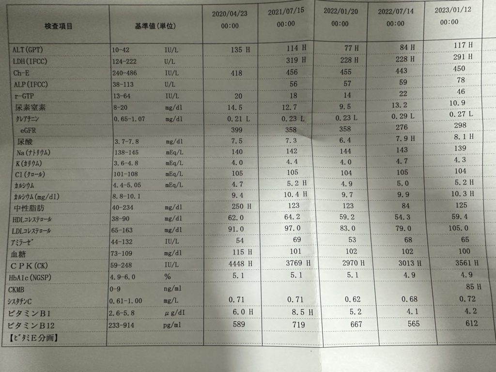前回は2022年7月に検査を行なったときのCPKは3013。